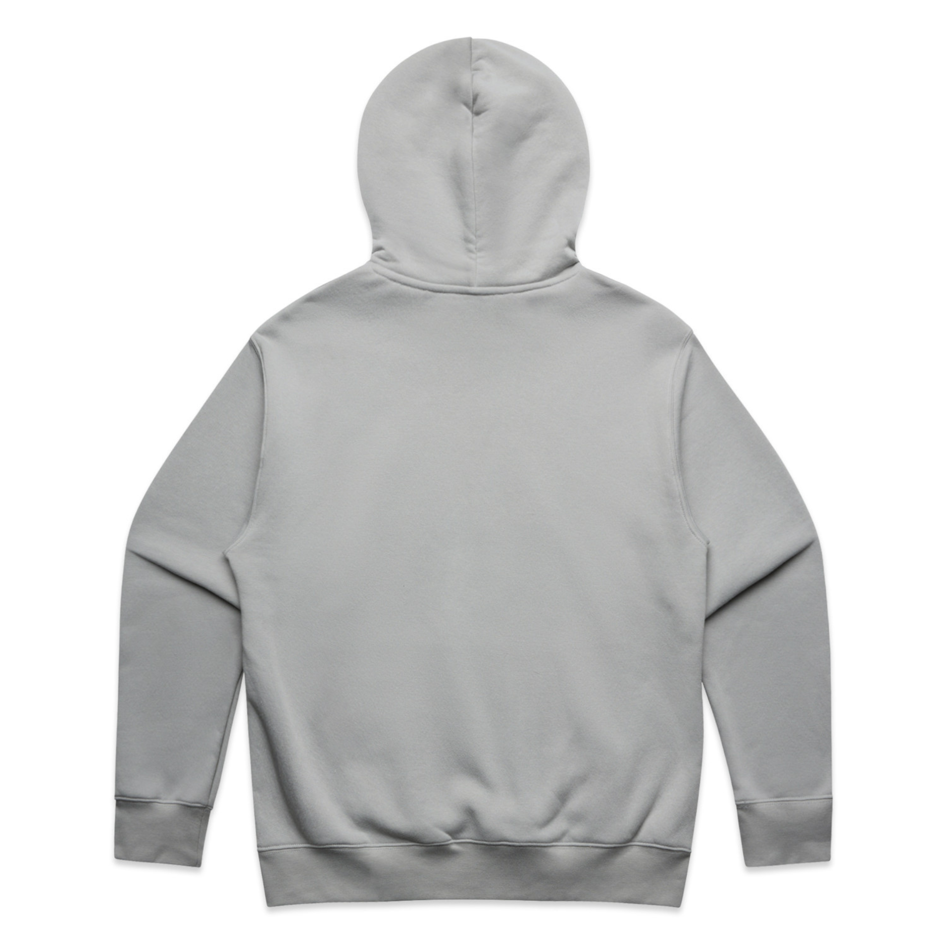 Pullover hood, drop shoulder, kangaroo pocket, lined hood, no drawcord, sleeve cuff ribbing.